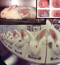 新しい化粧品、シャンプー、洗剤の開発のために、たくさんの動物が実験台に。